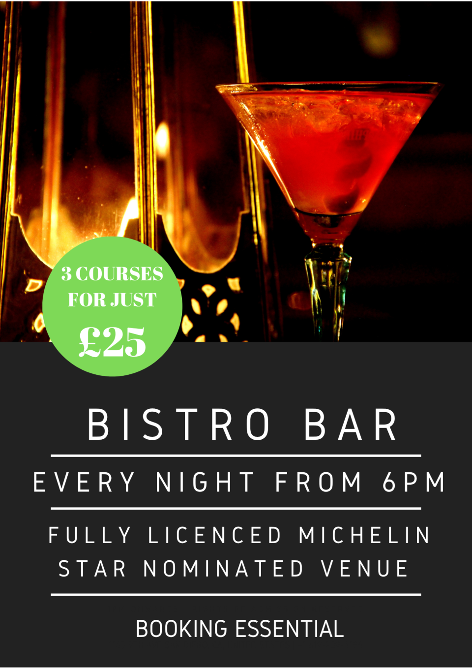 Bistro Bar open daily from 6pm - Booking Essential