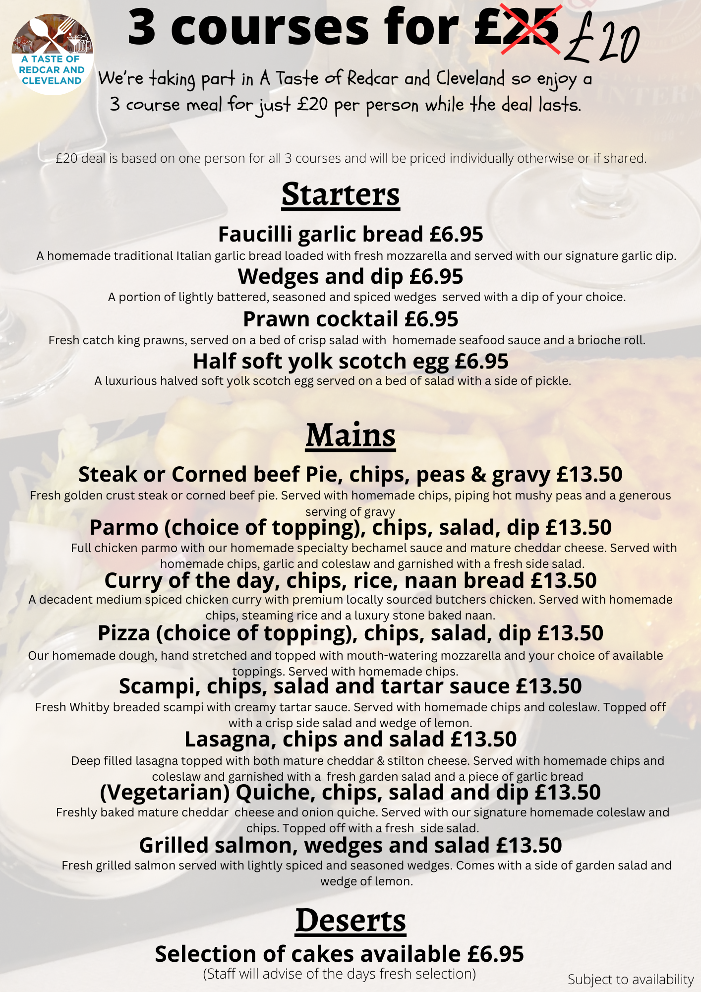 3 course meal menus for A Taste Of Redcar And Cleveland